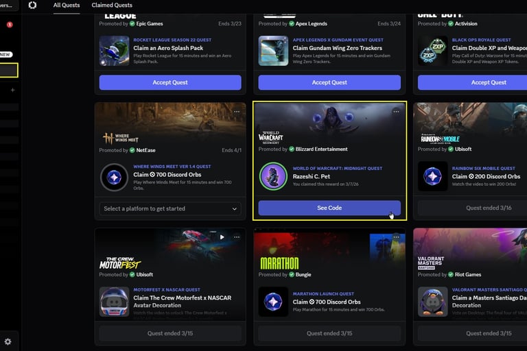 Quick Completion: All you need is 15 minutes in WoW with Discord running.